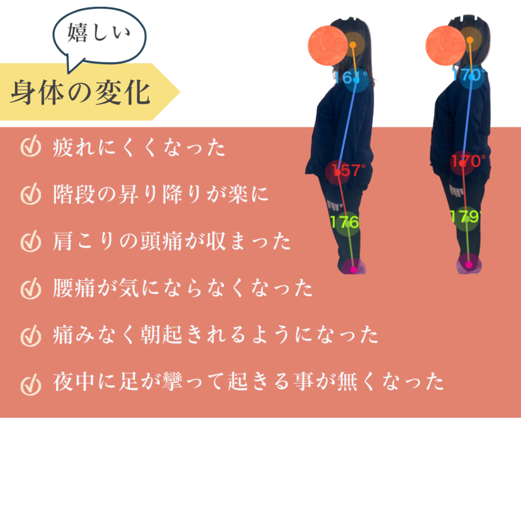 それによって、今まで肩こりや腰痛なんて感じた事は無かったのにという声はよく聞きます。