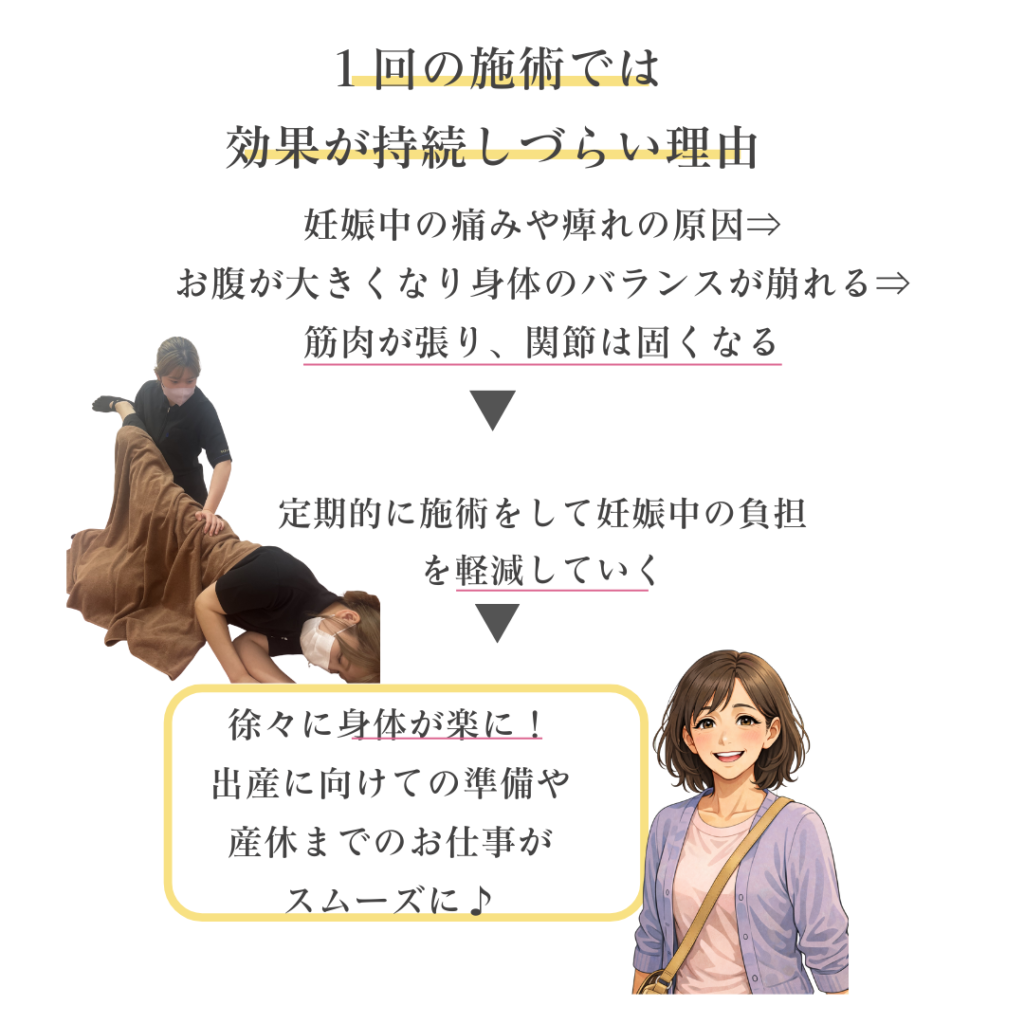 結果、不調が改善し快適なマタニティライフを過ごせるようになります。